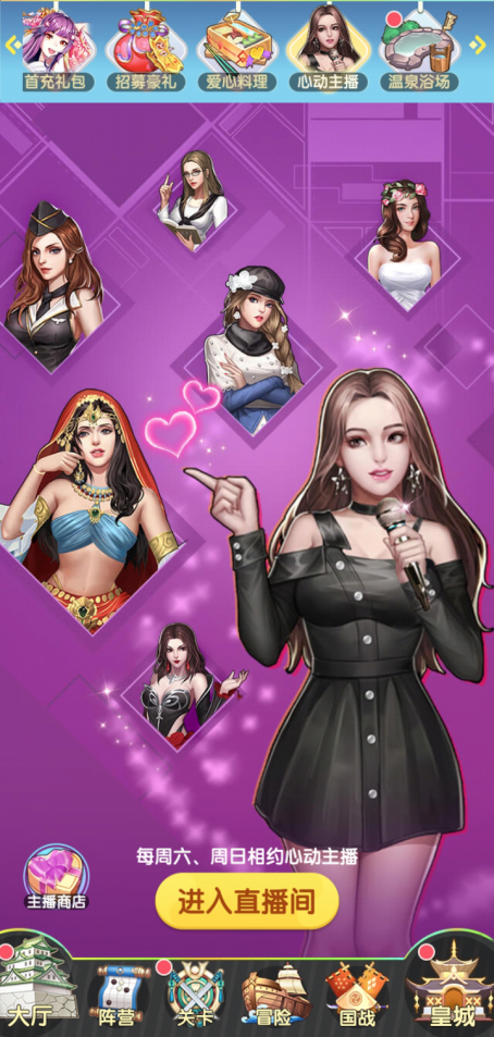 有缘相遇,满心欢喜,此时,此刻,所有甜蜜送给你——欢迎来到主播直播室!进入直播间,相约心动主播,千金易得,知音难求,小礼物刷一刷,成为她的专属小粉丝!每次主播开播,会有三次免费打赏的机会!每次打赏主播会随机打赏火箭.跑车等礼物,打赏后可获得相应主播唇印,唇印可在主播商店中兑换奖品,最高兑换奖品可将主播迎娶回家哟!(*萌新光环:新服开服前7天,每天开启主播活动;开服7天以上,每周六及周日开启主播活动)
